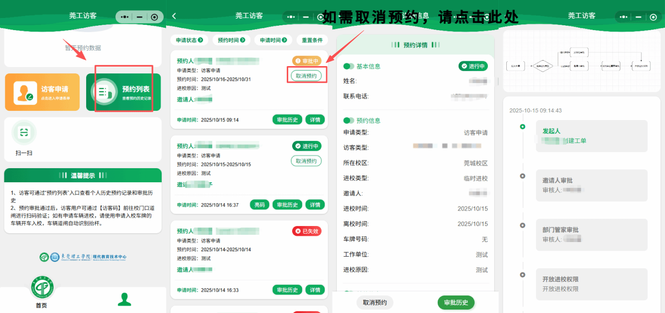 (三)等待审核,可通过预约列表查看所有已预约的申请,查看预约详情及审批历史。